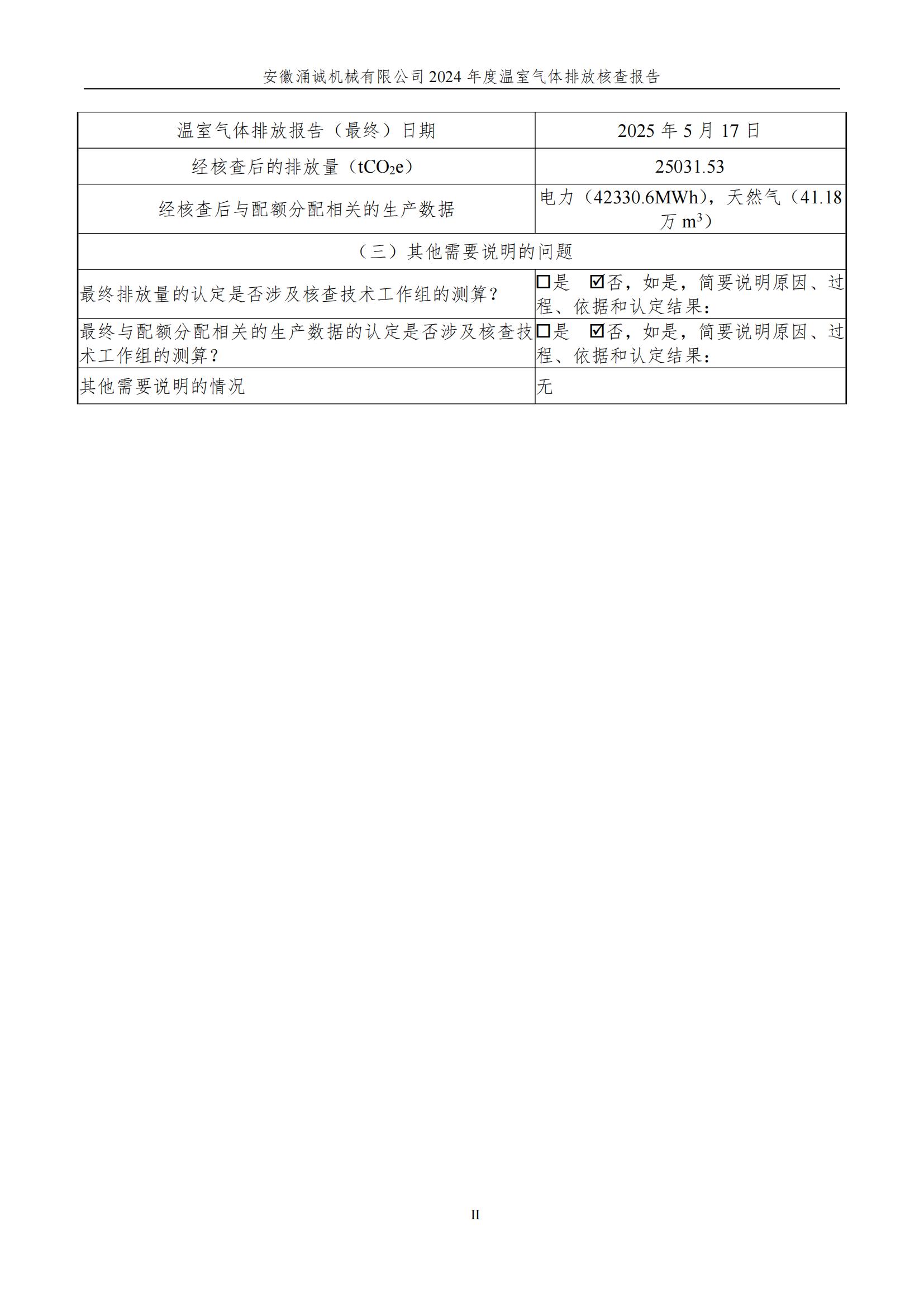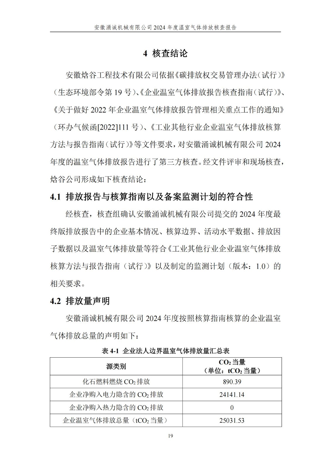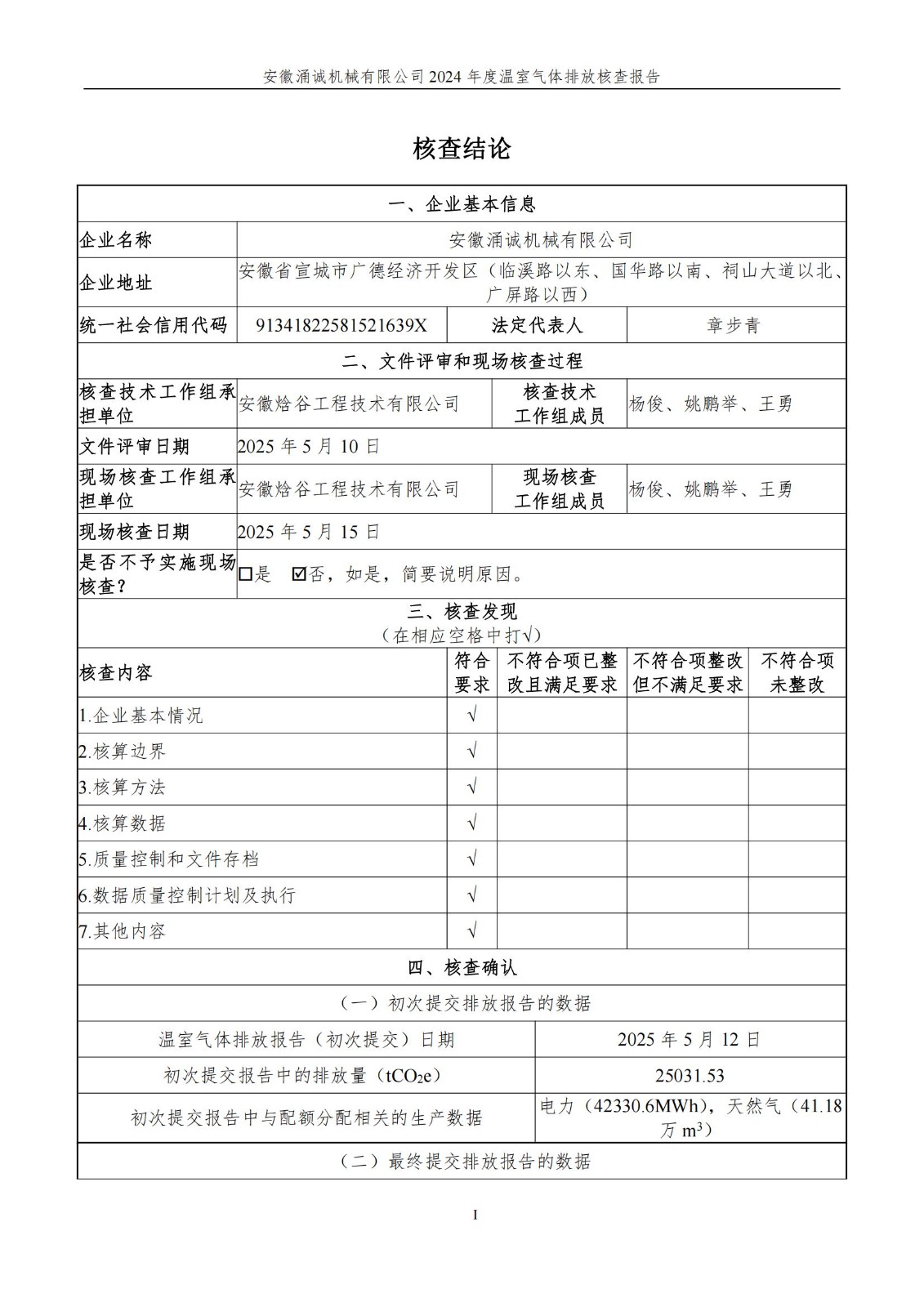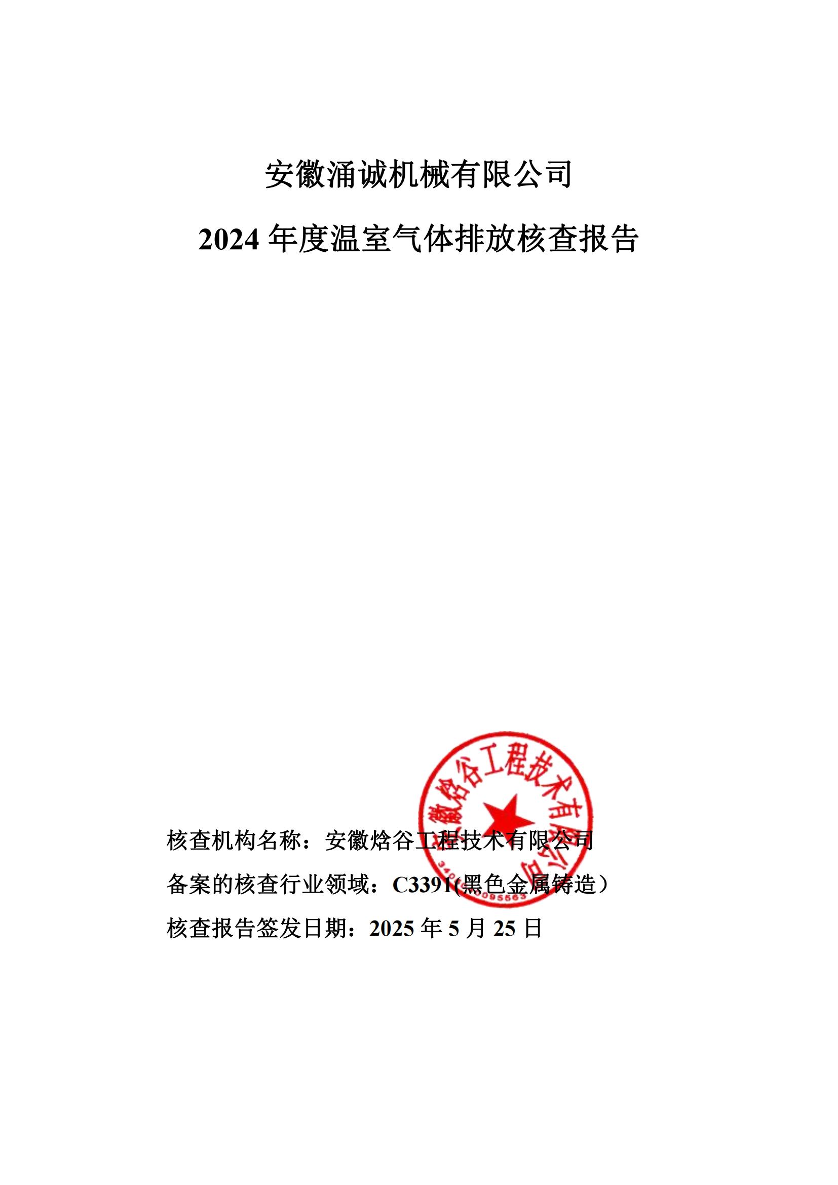 安徽涌誠機械有限公司 2024 年度溫室氣體排放核查報告