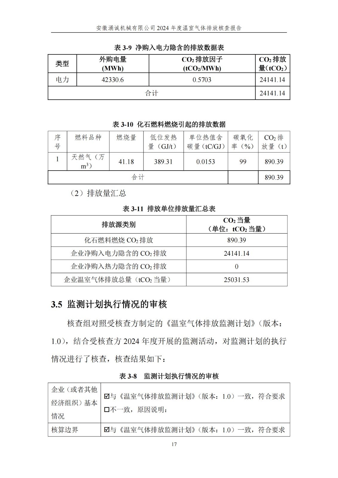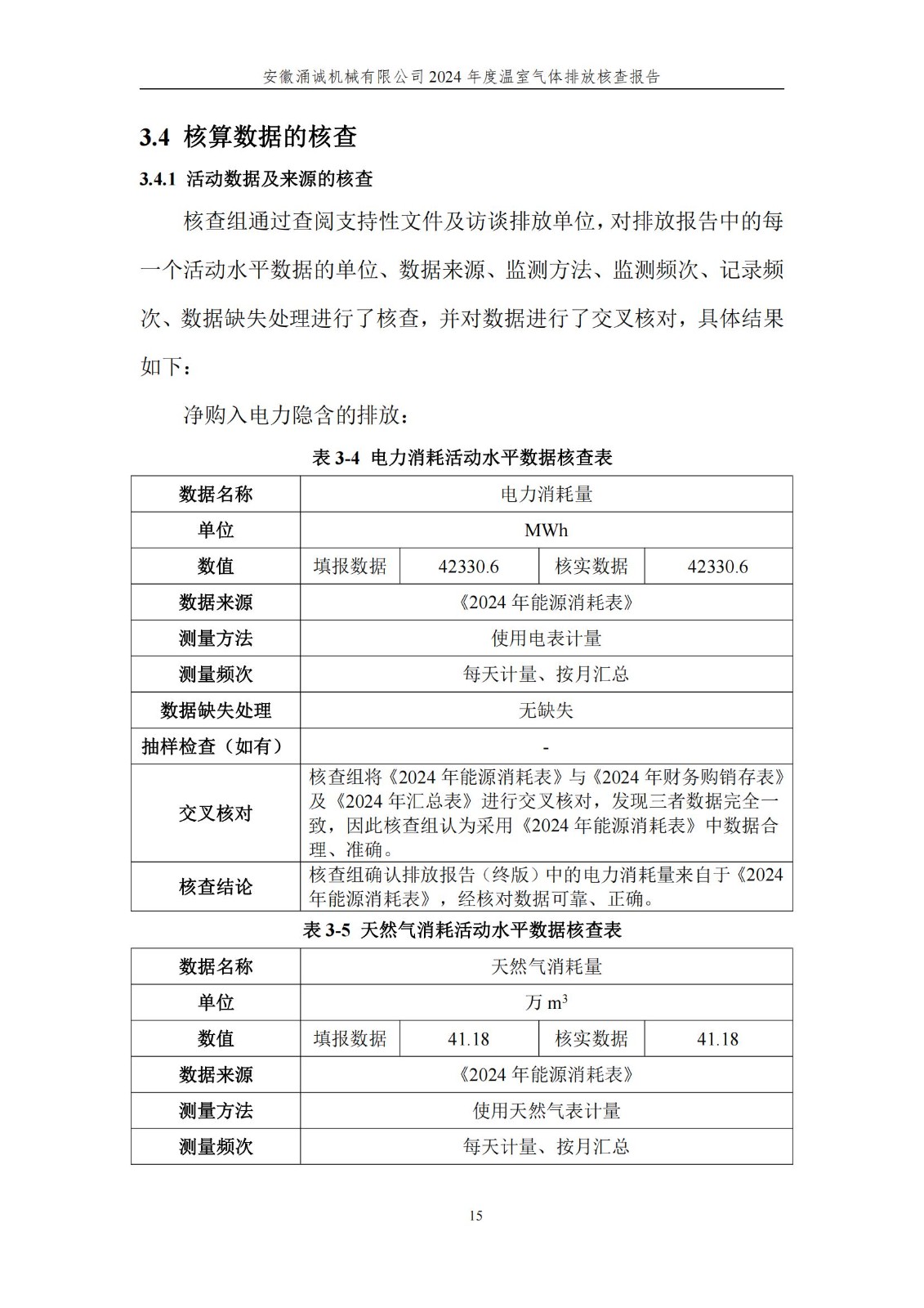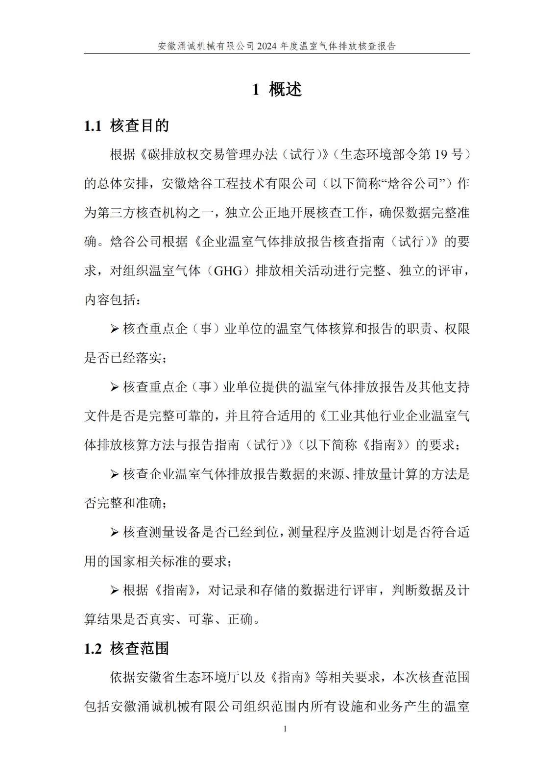 安徽涌誠機械有限公司 2024 年度溫室氣體排放核查報告