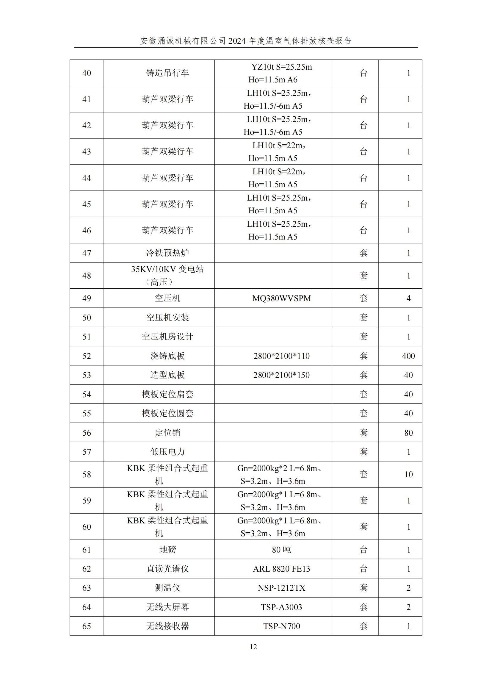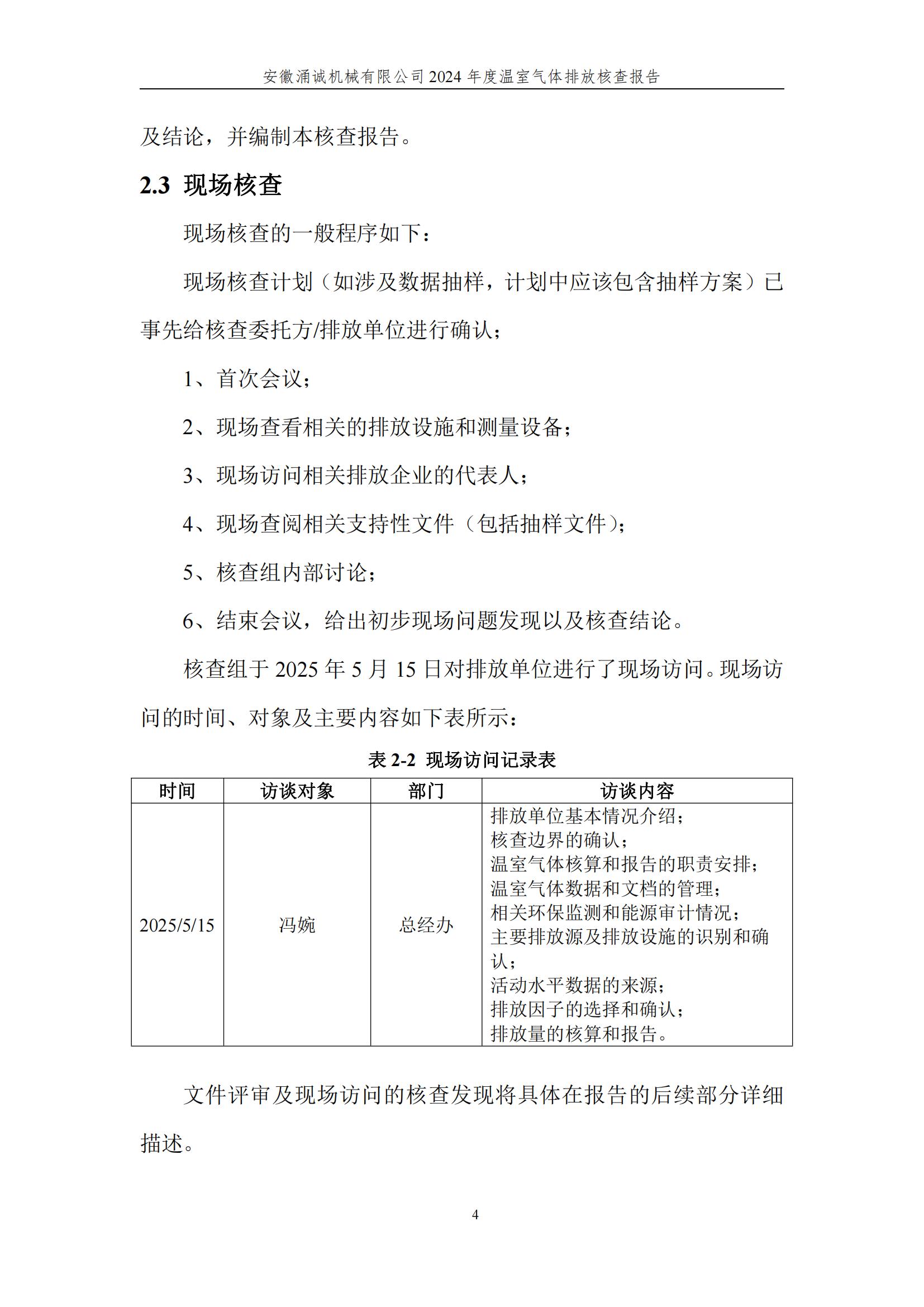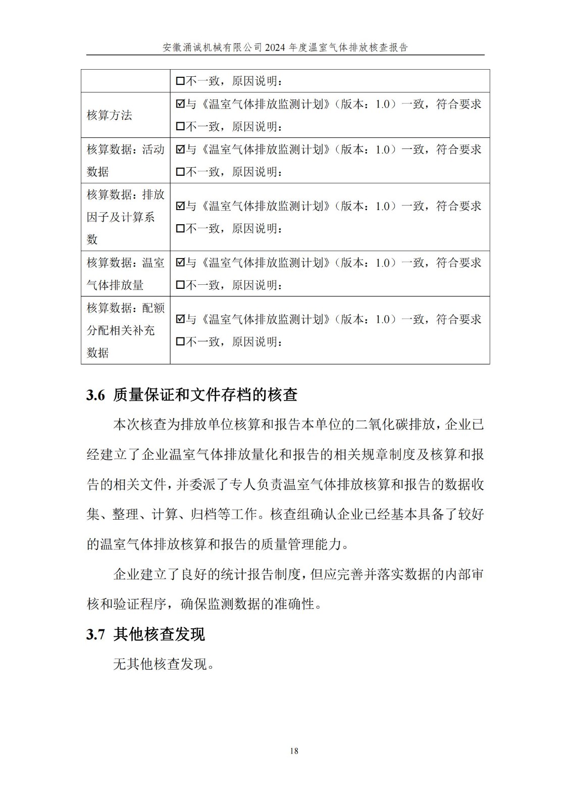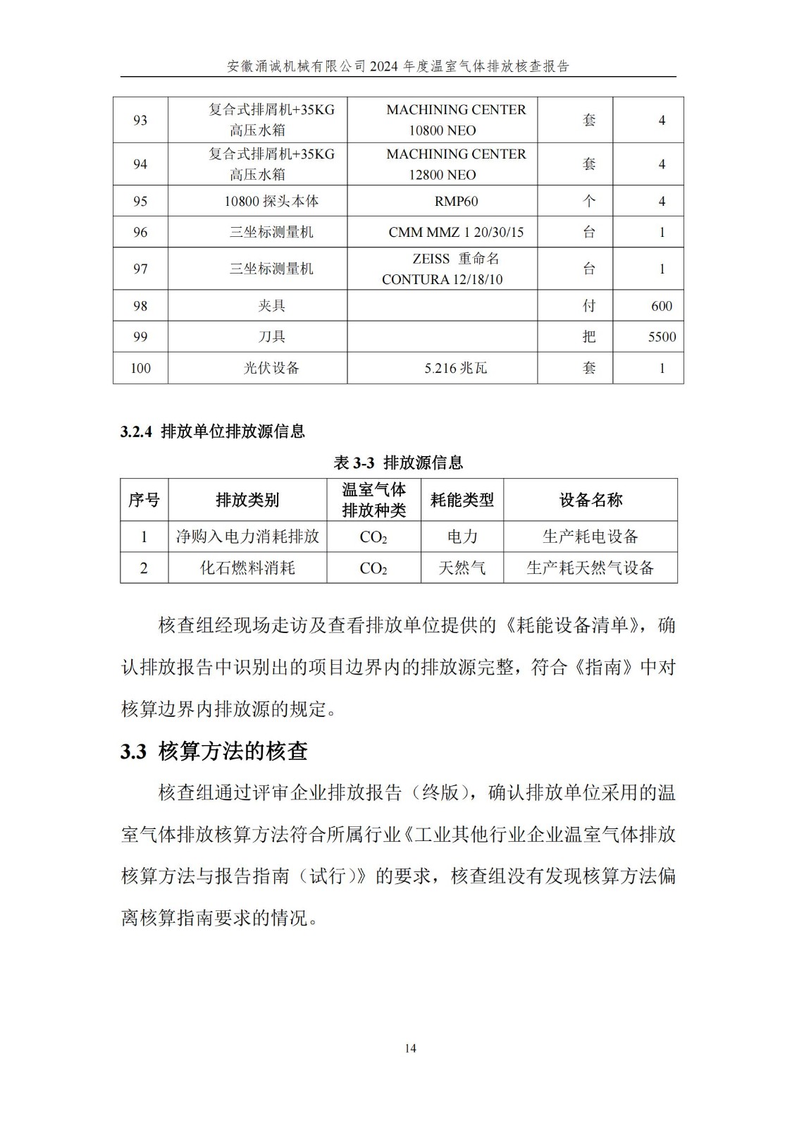 安徽涌誠機械有限公司 2024 年度溫室氣體排放核查報告